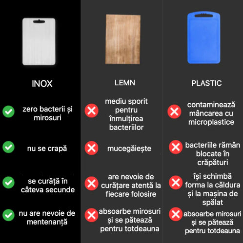 „Tocătorul din inox este super ușor de curățat! Nu mă mai îngrijorez de bacterii. Recomand!”